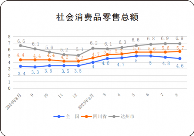 達州市8月份社會消費品零售總額增速